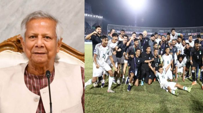 এশিয়ান কাপ বাছাইপর্বে ভারতের বিরুদ্ধে ১-০ গোলে জয় উদযাপন করছে বাংলাদেশ ফুটবল। এই দুর্দান্ত জয়ের জন্য জাতীয় দলকে অভিনন্দন জানিয়েছেন প্রধান উপদেষ্টা প্রফেসর মুহাম্মদ ইউনূস। বুধবার দুপুরে প্রধান উপদেষ্টার প্রেস